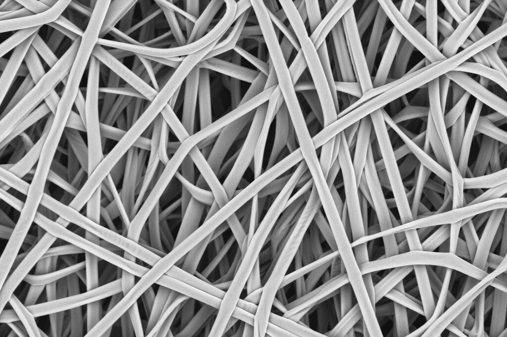 Polymer fibers with diameters below one micron, offer a high surface-area-to-volume ratio, tunable porosity, and excellent mechanical flexibility. These characteristics make them highly valuable in biomedical applications, where surface interactions, diffusion, and biocompatibility are critical. In tissue engineering, fibrous scaffolds closely mimic the ECM, supporting cell adhesion, proliferation, and differentiation. In drug delivery, fibers enable controlled and localized release of therapeutic agents through diffusion or degradation-based mechanisms. Fiber mats are widely used in wound dressings due to their breathability, ability to maintain a moist healing environment, and capacity for antimicrobial or bioactive agent incorporation. Emerging applications also include biosensors, implant coatings, and regenerative medicine scaffolds, where their customizable structure and composition offer significant design flexibility. Nanofibers can be fabricated by many different methods, but electrospinning stands out for its ability to fabricate fiber with tunable properties, room-temperature operation, and large range in material compatibility.4