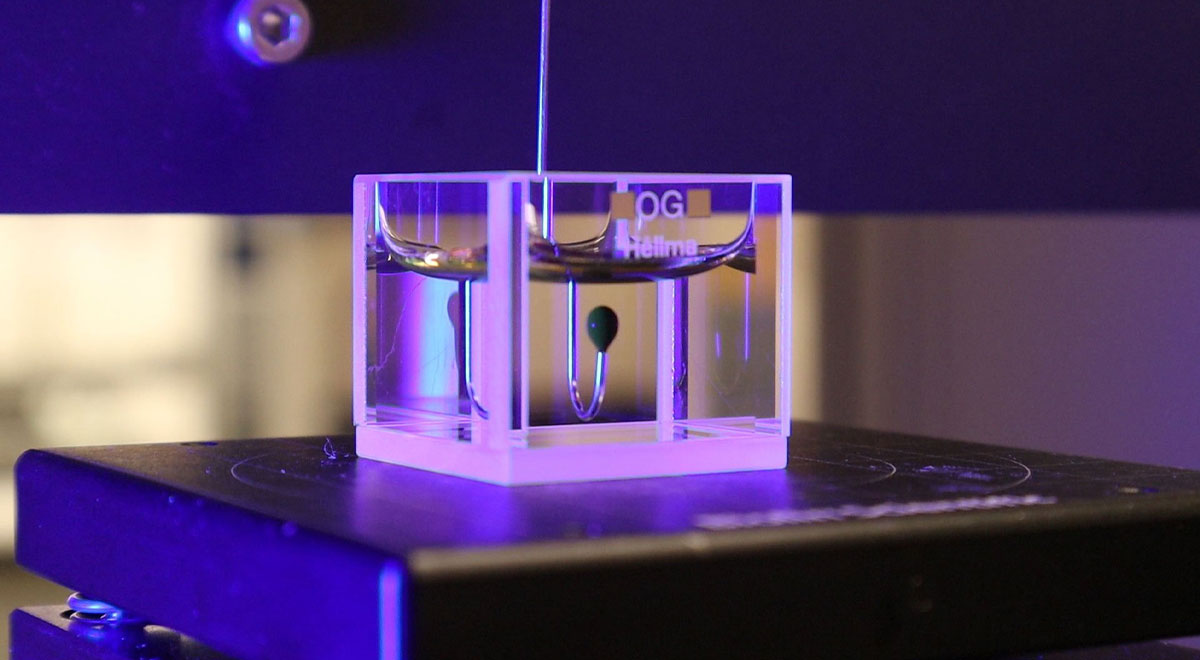 Surface tension governs the stability and elongation of the electrospinning jet. Excessively high surface tension resists deformation and stretching, promoting bead formation or discontinuous fibers, while surface tension that is too low can destabilize the jet and compromise coating uniformity on medical substrates. At Nanoscience Analytical, surface tension is measured using an optical tensiometer based on the inverted bubble method, a technique particularly well suited for polymer solutions that may be sensitive to evaporation or oxidation. By forming an air bubble within a sealed sample and analyzing its geometry using high-resolution imaging and software-based modeling, this method delivers precise, reproducible measurements while preserving solution integrity. Subtle variations in polymer concentration, solvent composition, or impurities that could affect coating consistency or device performance are readily detected.