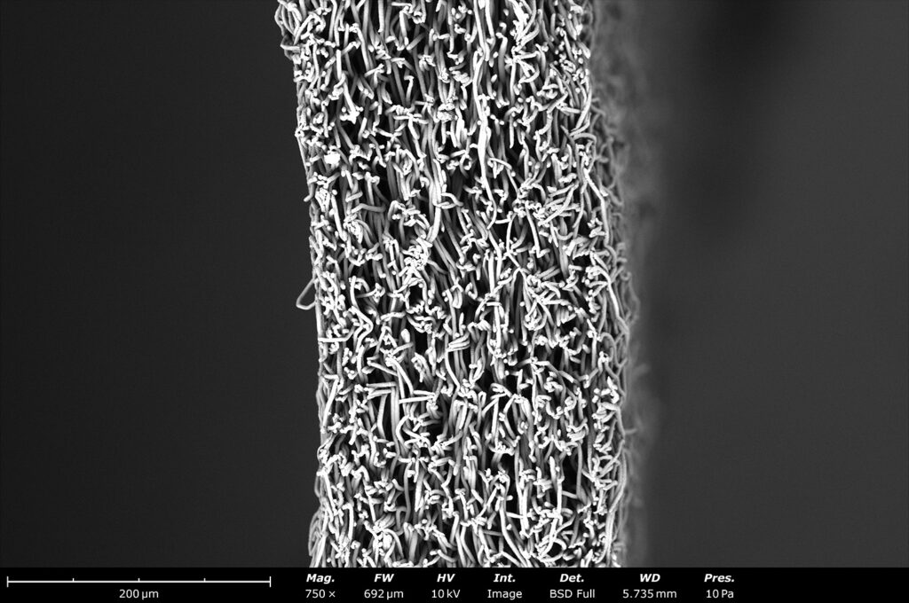 Scanning Electron Microscopy (SEM) serves as a cornerstone of this evaluation. With nanometer-scale resolution and advanced image analysis capabilities, SEM enables precise visualization and quantitative assessment of electrospun materials. At Nanoscience Analytical, SEM is fully integrated into the electrospinning development workflow, allowing direct correlation between solution properties, processing conditions, and final device-relevant material outcomes.