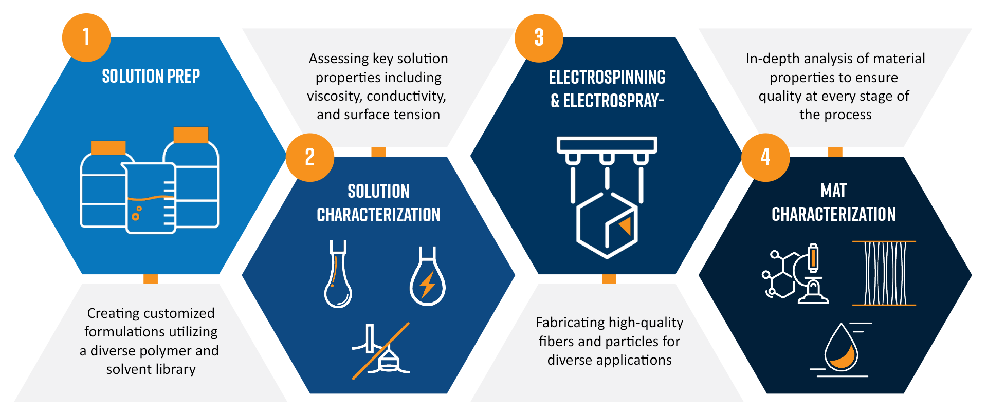 By combining rigorous solution characterization, process optimization, and post-fabrication material analysis, we enable electrospinning to become predictable, repeatable, and scalable, qualities that are essential for medical device development and commercialization. This methodology reduces batch-to-batch variability, accelerates development timelines, and provides defensible data to support design controls, process validation, and quality assurance.